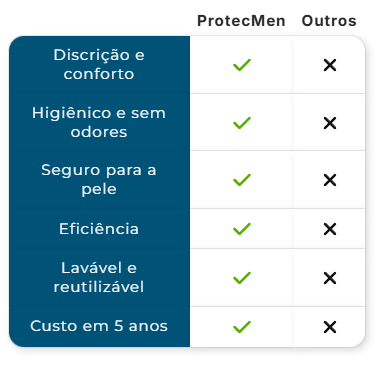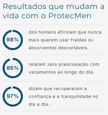 Já tinha tentado outras soluções que não davam certo. O ProtecMen é o único que realmente trouxe conforto e segurança no meu dia a dia.