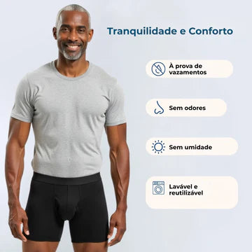 Cueca reutilizável de alta absorção que protege contra incontinência sem abrir mão do conforto.